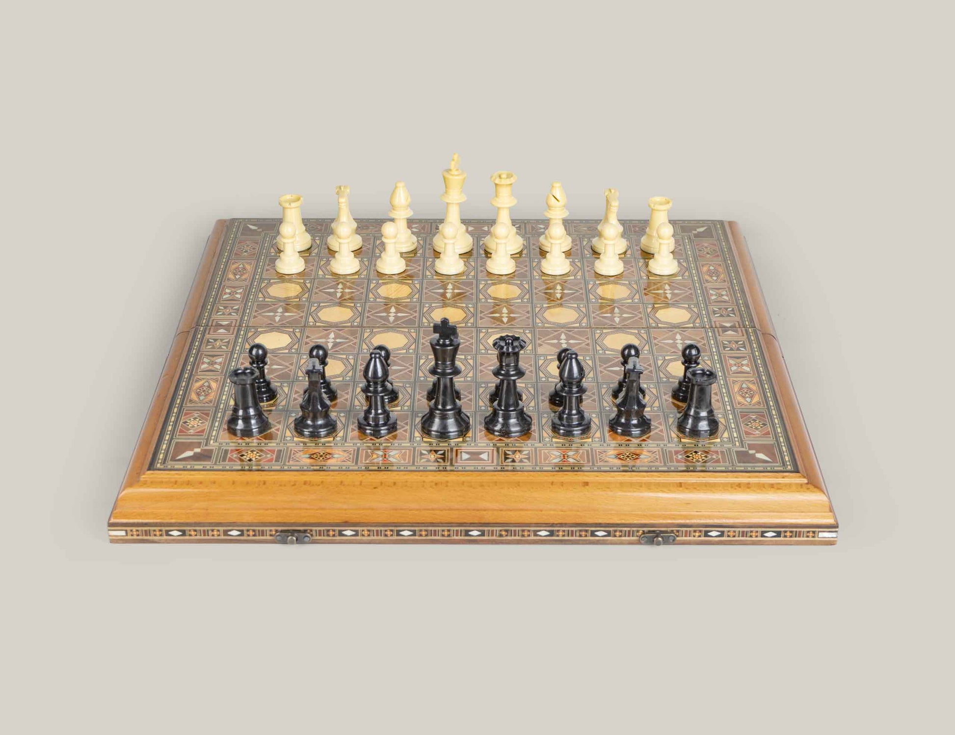 Inspired by the rich crafts of the ancient city of Marash, this handcrafted game set brings together symmetrical beauty and functional elegance. With a detailed mother-of-pearl inlay forming mesmerizing patterns across the surface, Marash is designed to elevate your game nights into artistic experiences.